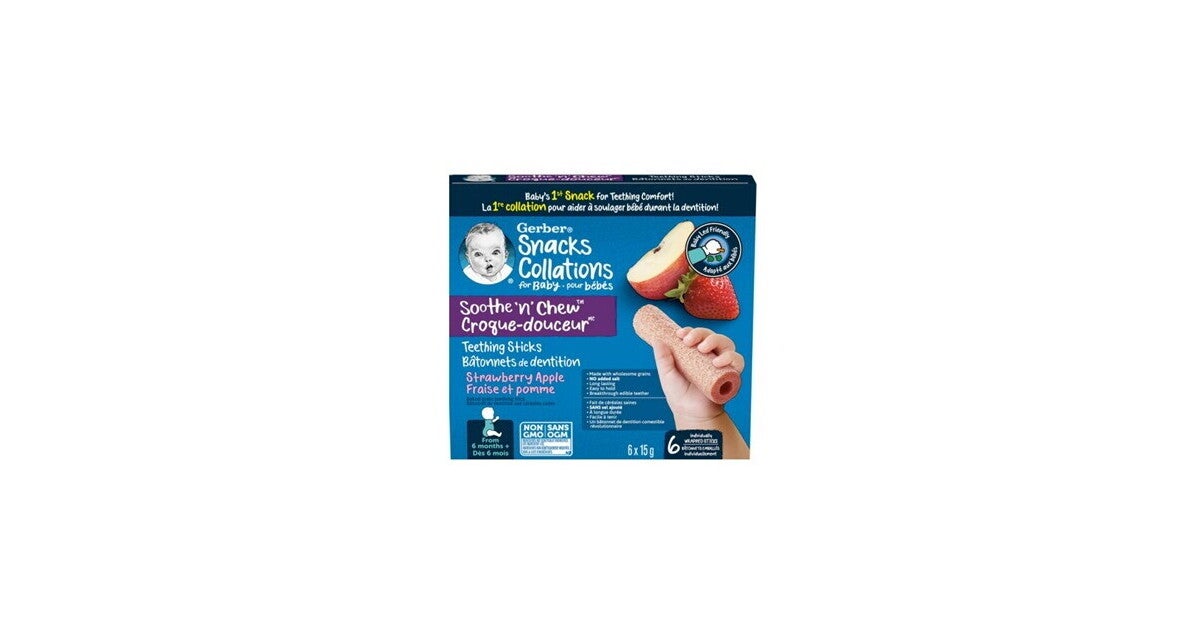Nestlé Canada amorce un rappel et l’arrêt de production des BÂTONNETS DE DENTITION GERBERMD CROQUE-DOUCEURMD en raison d’un risque d’étouffement pour les bébés et les jeunes enfants. Il n’y a aucune incidence sur les autres produits Gerber.